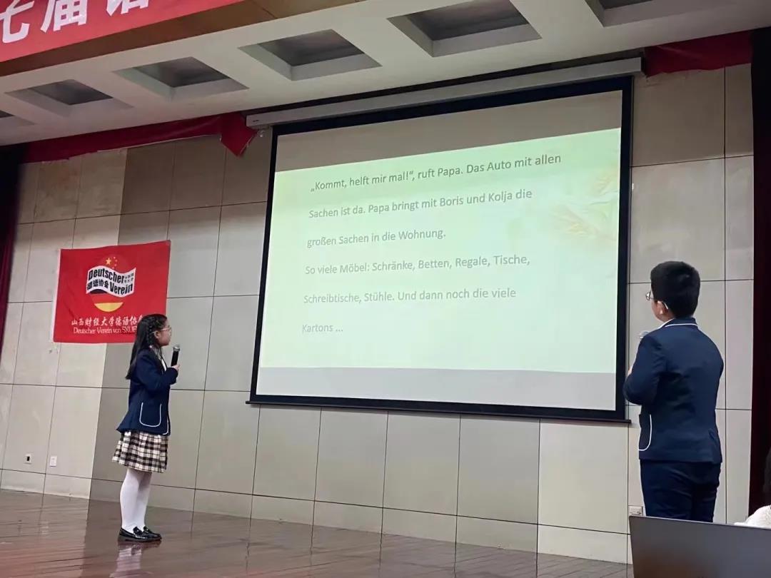 这次比赛不光有大一的选手们,还有两位小朋友也上台展现了读德语的魅力。