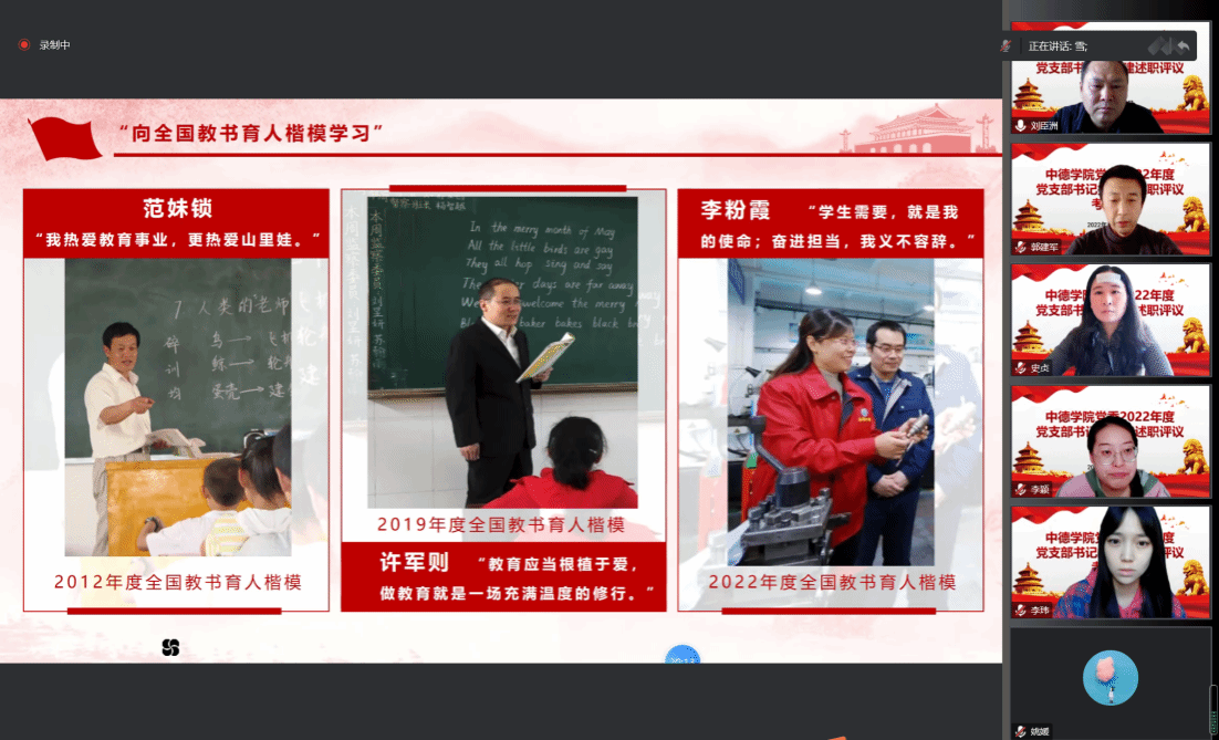 为充分发挥先进典型的示范引领作用,引导教师争做党和人民满意的“四有”好老师,营造尊师重教的良好风尚,12月27日下午,永利集团304am登录以线上方式开展主题党日活动,组织全体党员教师学习全国教书育人楷模先进事迹。学院党委书记刘臣洲、党委副书记、院长史贞、党委副书记郭建军以及党政支部和学生党支部全体教工党员参加会议。会议由学院党委副书记郭建军主持。