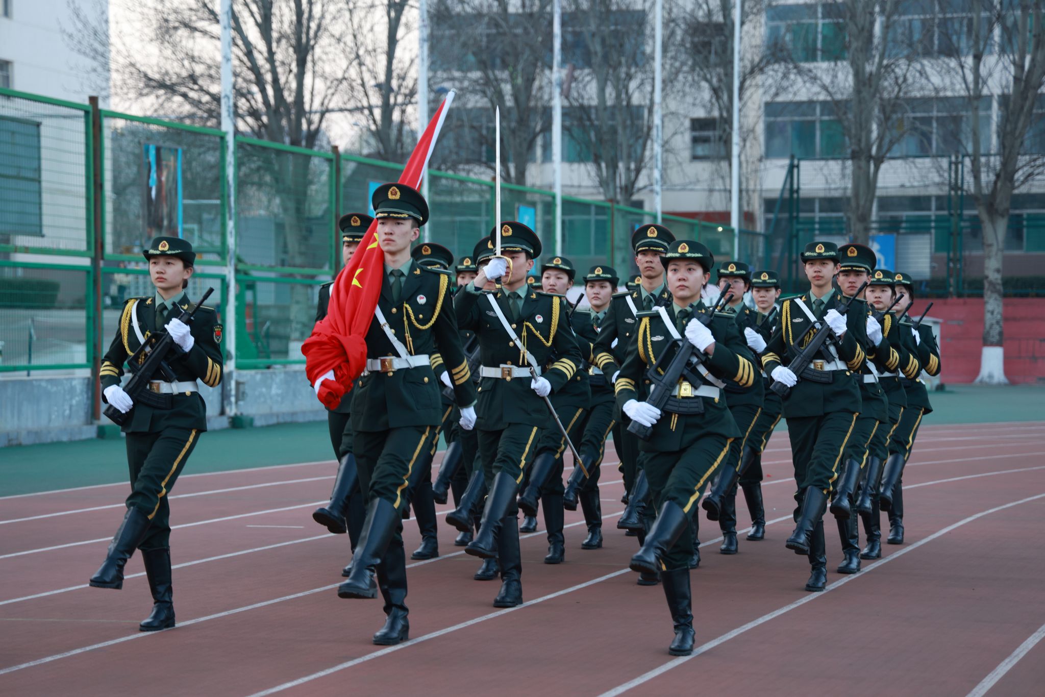 迎着春日的暖阳,感受着青春的温度,国旗班队员们身着统一服装,迈着坚定的步伐,以最饱满的热情、最昂扬的气势,守护着国旗走向国旗台。随着激昂嘹亮的《义勇军进行曲》响起,鲜艳的五星红旗在空中展开,冉冉升起。全体师生向五星红旗行注目礼,齐唱国歌,向祖国致以最崇高的敬意。