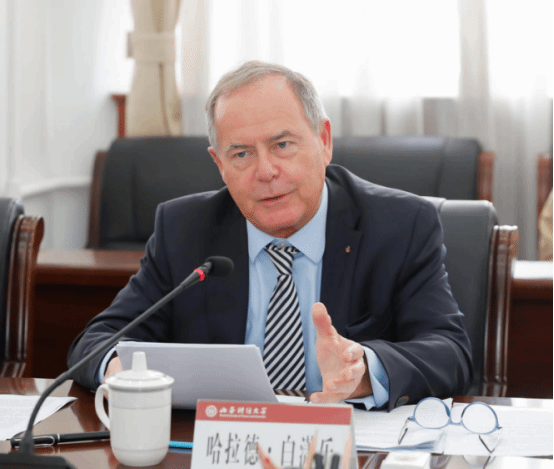 Harald Beschorner在致辞中表示,FOM大学将确保课程与时俱进并不断融入新的教学方法,同时持续选派高水平教师赴本项目授课,为学院发展注入新动力。同时,将探索两校合作发展的新思路,共同申请建设新的专业课程,共同培养研究生,不断开展联合科研项目以及跨文化语言交流项目等;要加强跨文化交流,希望通过双方的合作,加强两国外交和经济关系,积极树立国际合作的典范。