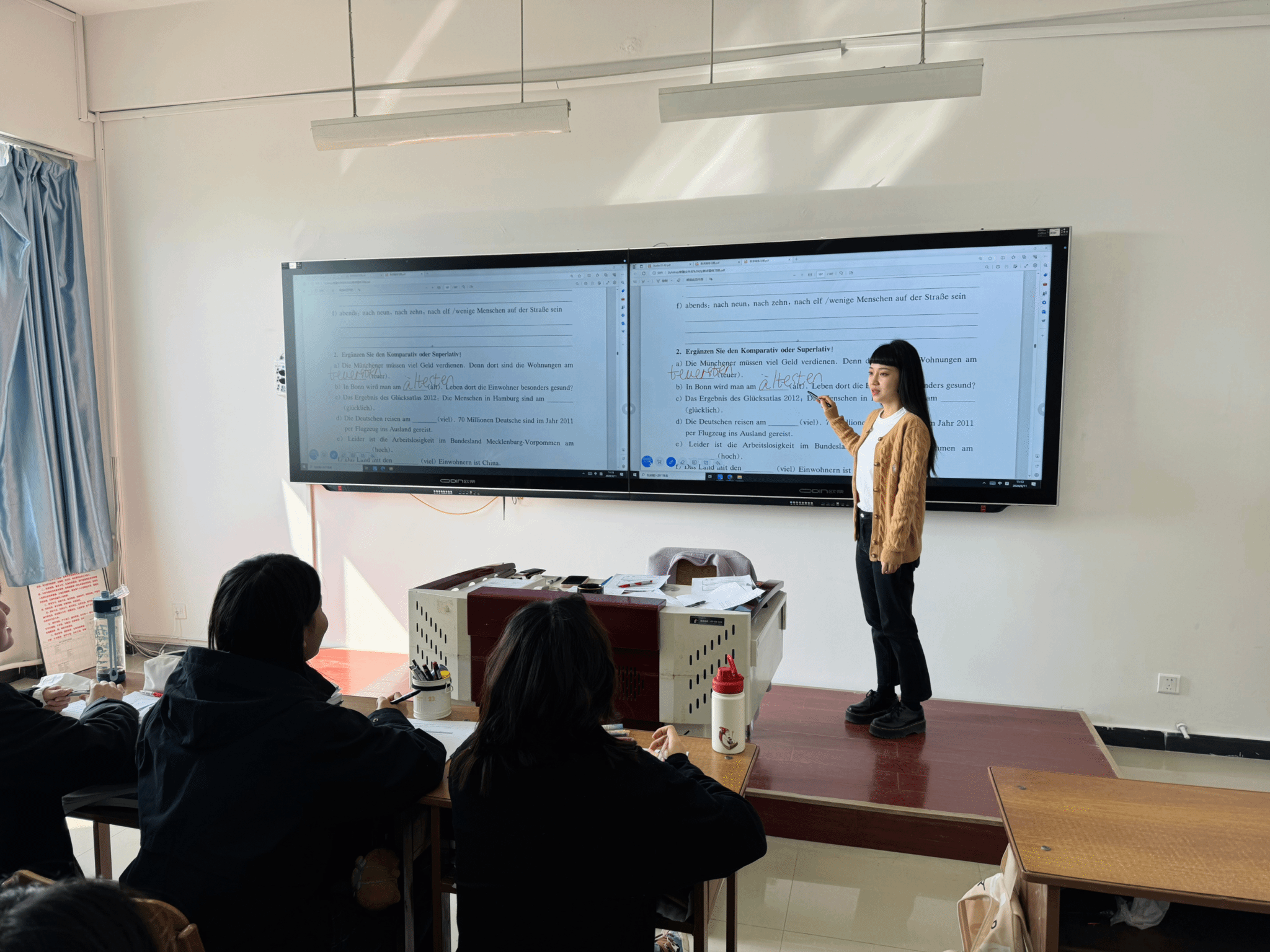 开学前一周,学院积极联系校教务部,组织相关人员对全体德语教师及教学管理人员进行新教学设备的操作培训,提升教师的教学设备操作能力,确保课堂教学质量。开学第一天,学院领导、教学督导人员与辅导员等进班查课听课,认真检查授课教师课程内容的教学设计,详细记录教师的教学行为与学生的课堂表现。永利集团304am登录开学初教学工作情况整体良好。授课教师提前到岗,课堂教学组织井然有序,课堂教学内容讲解清晰,同学们精神饱满,听课状态良好,课堂师生互动积极,学习气氛浓烈。