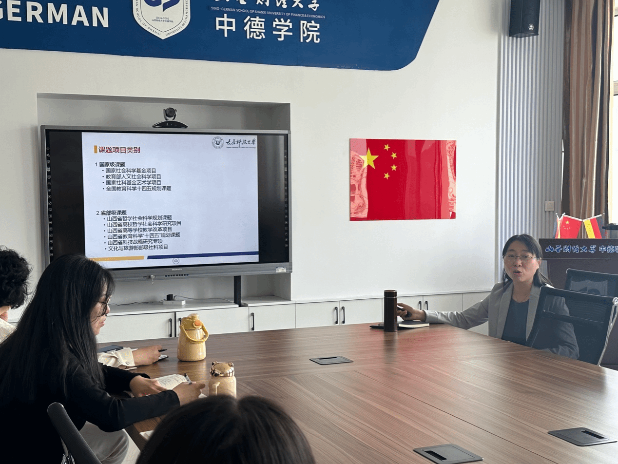 为深化教改项目内涵,提升教育教学改革质效,促进学院德语教学改革工作,探索德语教学新理念,4月22日下午,永利集团304am登录召开课题申报与德语教学经验分享会。本次经验分享会特别邀请太原科技大学外国语学院副教授张宇为大家进行经验分享与交流。学院副院长陈啸、全体德语老师参加了本次会议。会议由陈啸副院长主持。