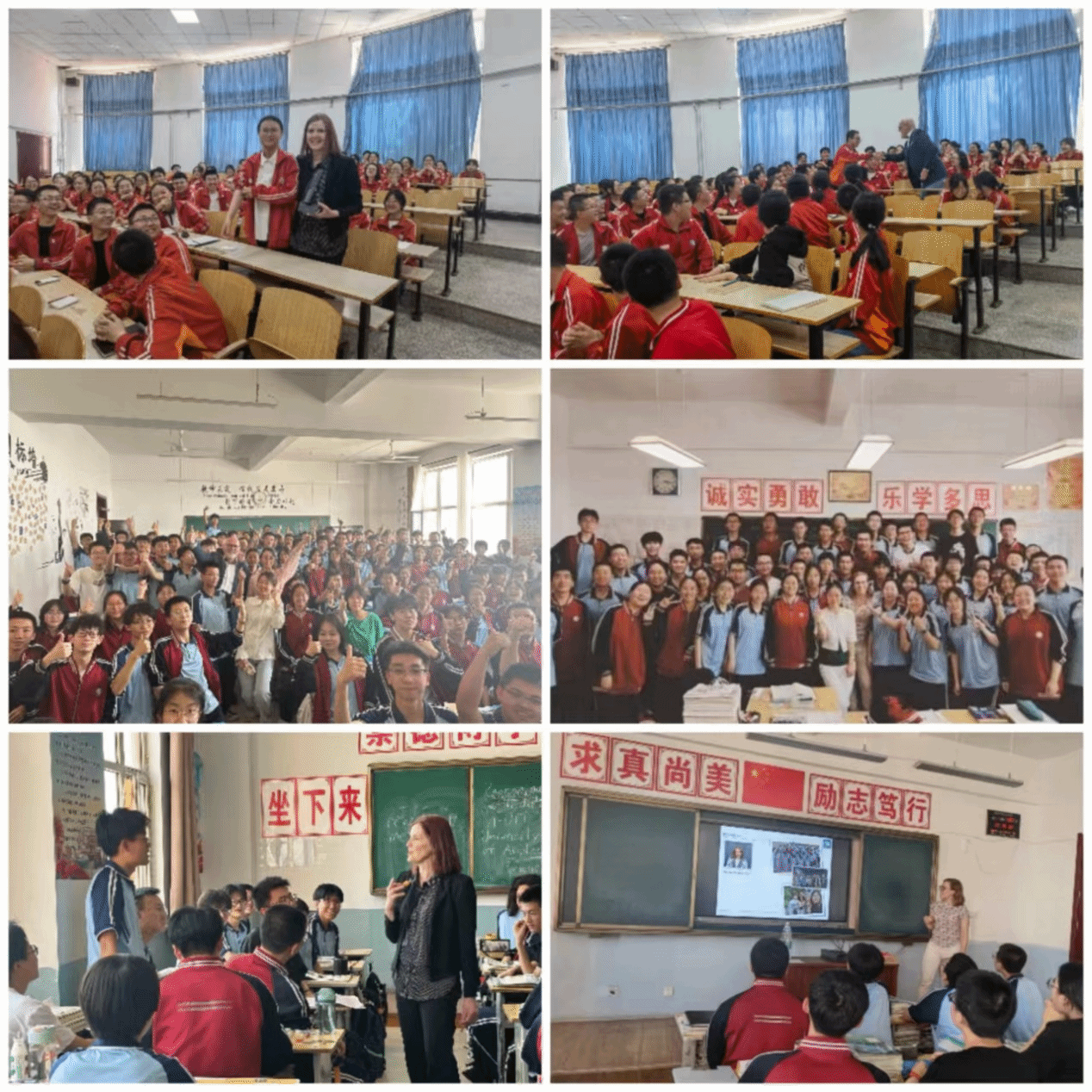 走进高中,遇见精彩。5月16日,永利集团304am登录副院长王秀娟带领外教Neitz教授、Rösch教授、Schubert助教、贺艳丽老师及校友刘一楠一行6人赴朔州市第二中学进行调研交流。朔州第二中学校董、永利官网2013届校友柳雁勇,副校长王璞及永利官网首届毕业生杨雅铄、2013届毕业生杜晓尧陪同参加了有关活动。