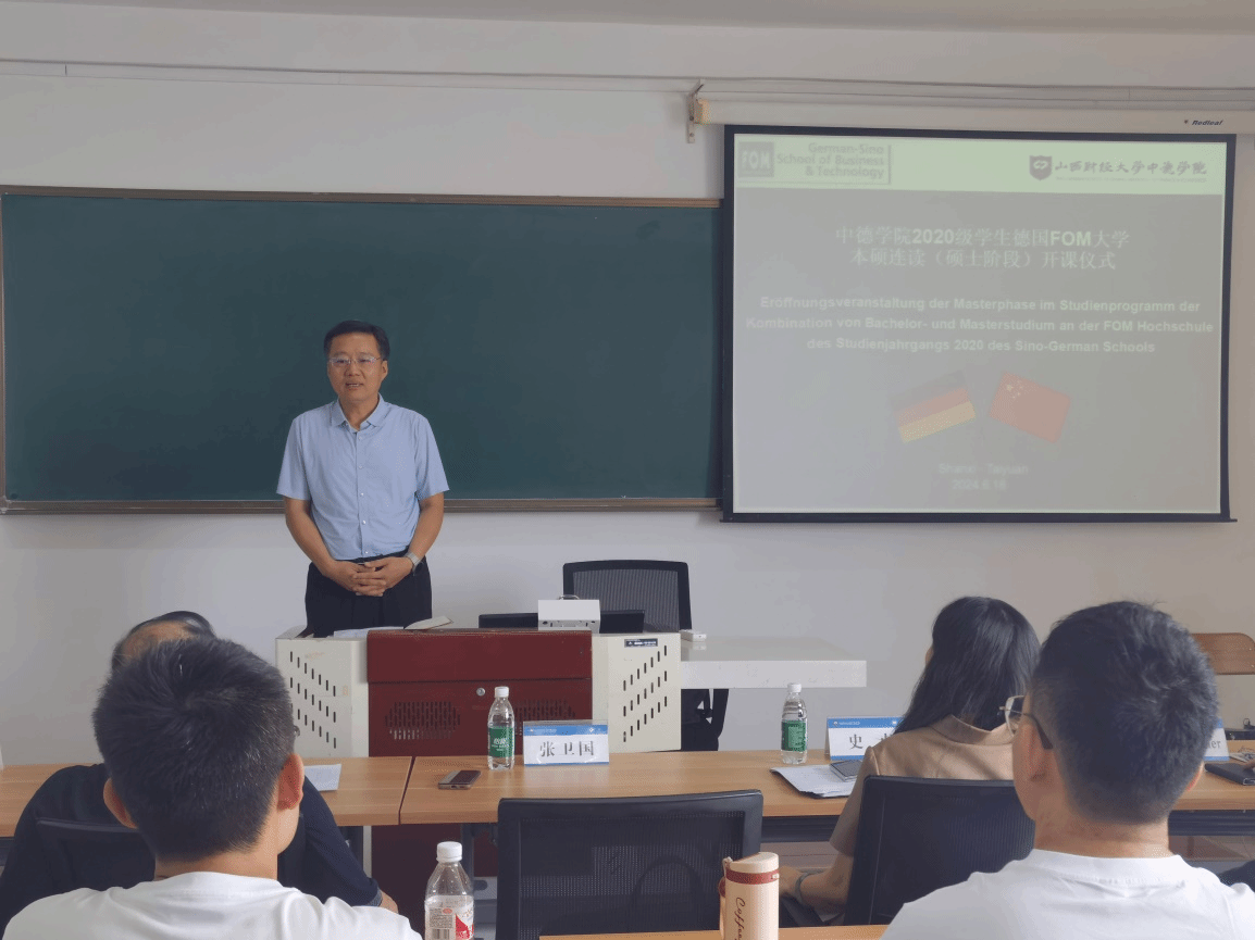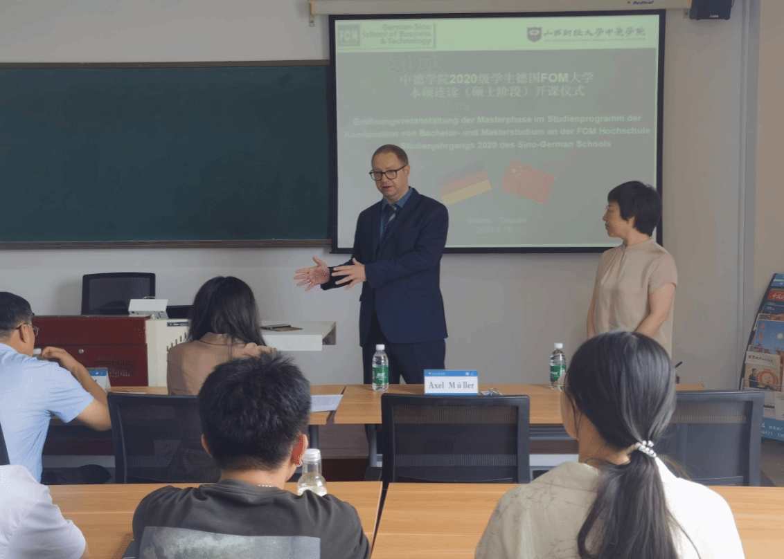 永利集团304am登录首届FOM大学本硕连读班(硕士阶段)开课仪式在我校坞城校区博学楼812教室举行,党委常委、副校长张卫国出席开课仪式并讲话,FOM大学教学院长Axel Müller、永利集团304am登录全体班子成员参加开课仪式。开课仪式由永利集团304am登录副院长王秀娟主持。