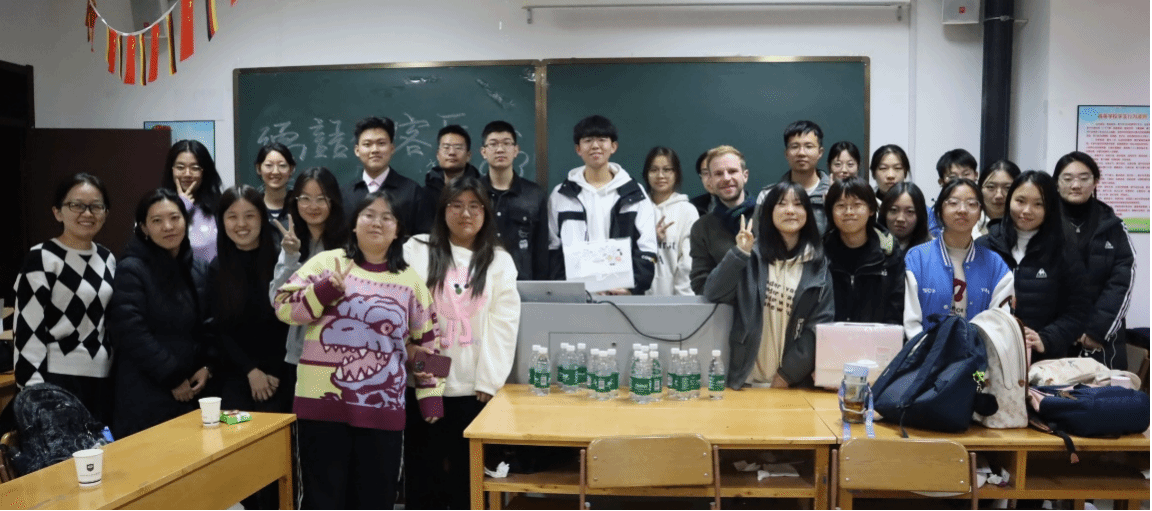 为丰富大学生的课余生活,使同学们在快乐轻松的氛围中学习德语、交流思想,开阔视野,激发大家学习德语的积极性,提升德语口语交流水平。10月27日,永利集团304am登录在坞城校区博学楼727教室举办了德语口语交流活动——“德语会客厅(第一期)”,学院教学副院长陈啸、副院长王秀娟、德方助教Moritz Zischler以及全体德语老师出席了本次活动。