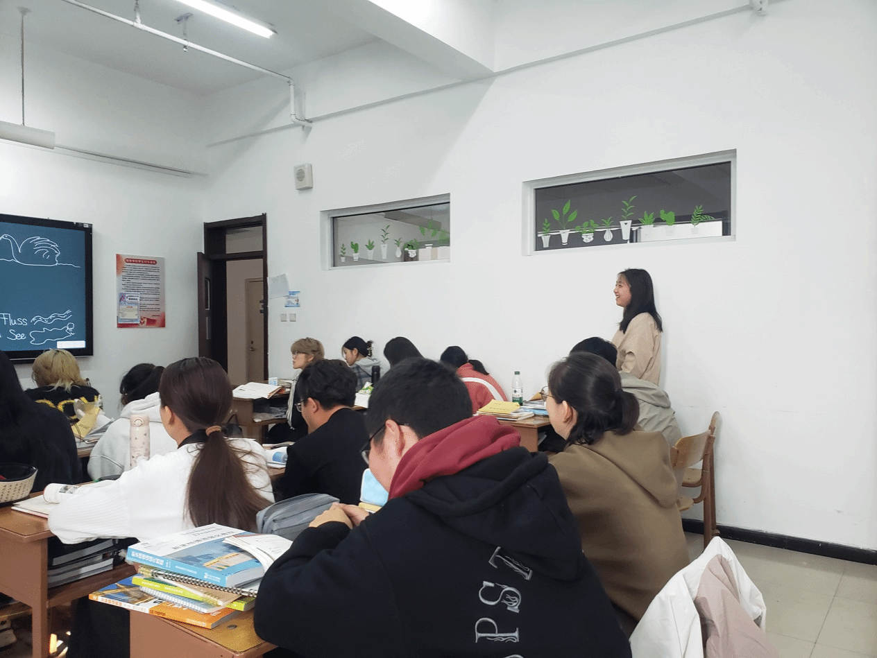 同学们在课堂上积极回应,沉浸在愉快的德语学习氛围中,不仅练习了口语、掌握了知识,还对德国国情及德国文化有了更深入的了解,这对同学们未来的德方专业课学习大有裨益。