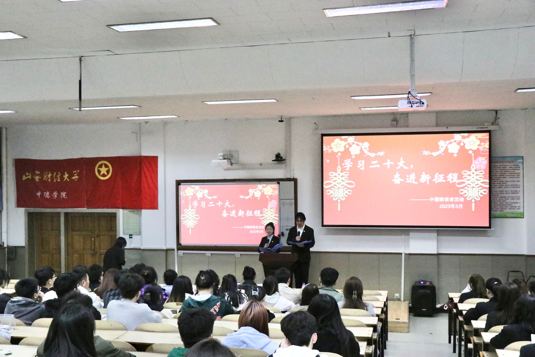 为深入学习宣传贯彻党的二十大精神,用习近平新时代中国特色社会主义思想武装青年,3月24日晚,永利集团304am登录在坞城校区慎行楼101举办以“学习二十大,奋进新征程”为主题的中德朗读者活动。