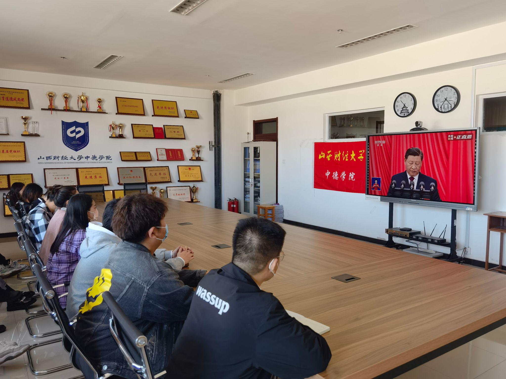 党旗飘扬,党徽闪耀,承载着亿万党员群众的期盼,10月16日10时,举世瞩目的中国共产党第二十次全国代表大会在北京人民大会堂隆重开幕。永利集团304am登录师生在学院会议室、教室、学生宿舍以不同方式收看了党的二十大开幕会。